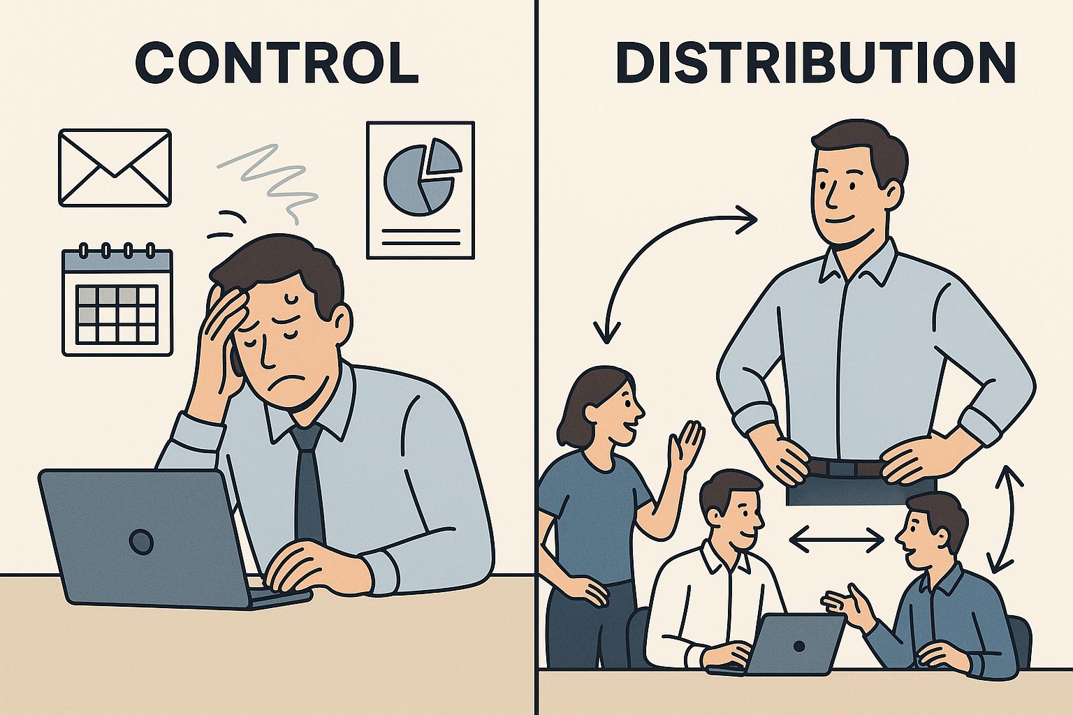 Control scales to your personal bandwidth. Distribution scales to your team's collective capacity. The choice determines whether you multiply impact or hit permanent capacity limits.