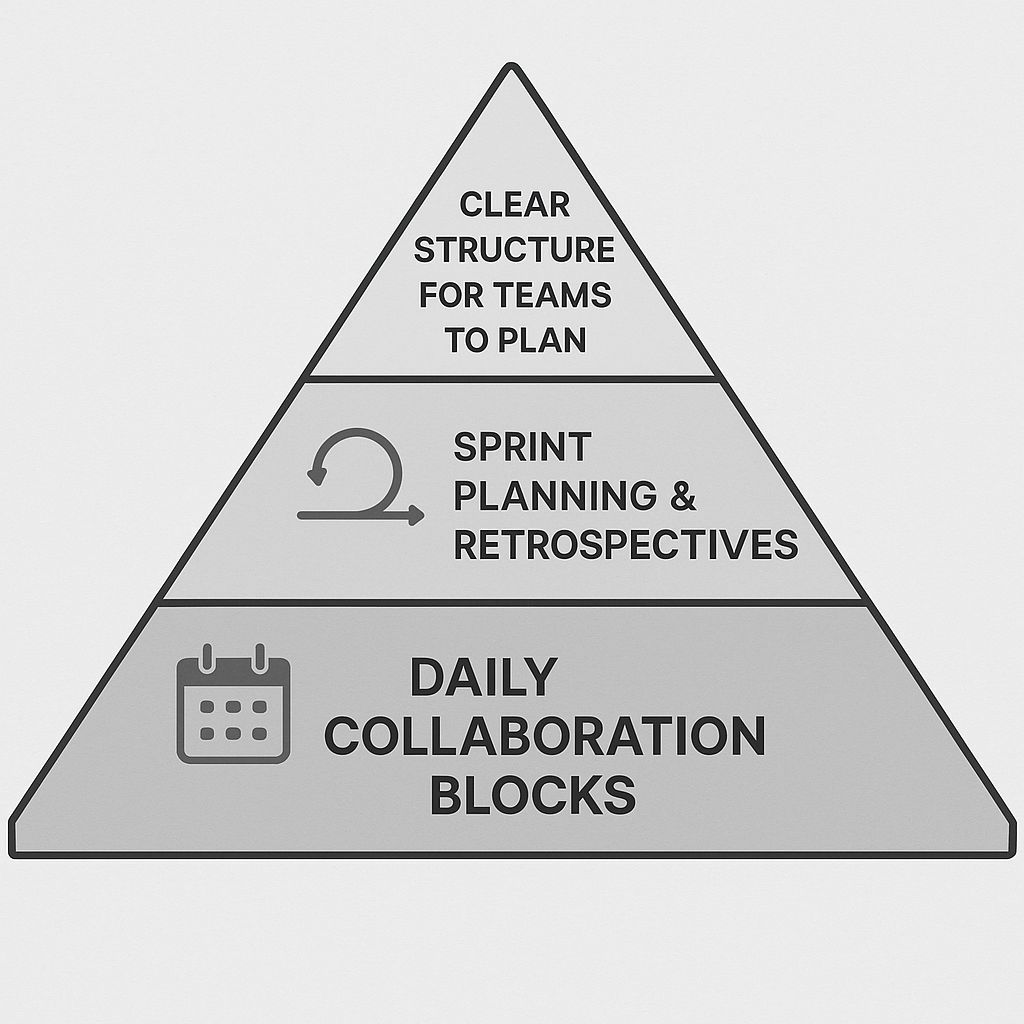 This eliminated constant interruptions of "can we find time to discuss this?" The standing time block meant teams could address blockers within 24 hours instead of waiting days for scheduling.