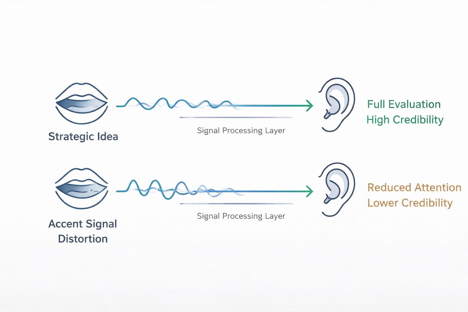 Executives allocate processing capacity before evaluating content merit. The allocation mechanism responds to perceived authority signals, accent among them.