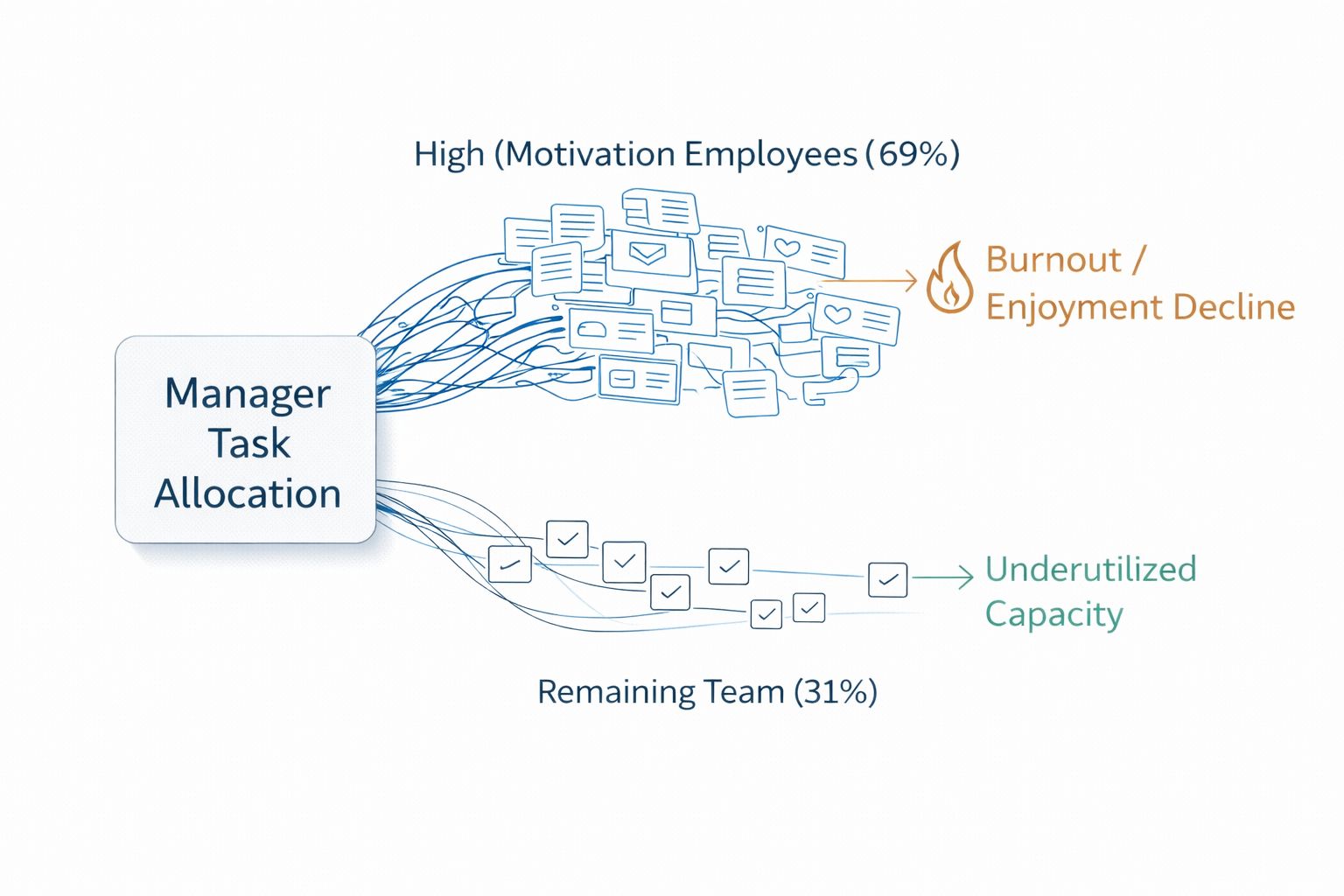 Managers assign 69% of additional tasks to their most intrinsically motivated employees. The remaining team members carry 31%. The distribution has nothing to do with capacity, tenure, or skill.